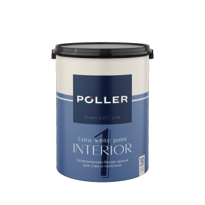 —Краска латексная для стен и потолков 1 POLLER белая бархатисто-матовая 4,5 л
